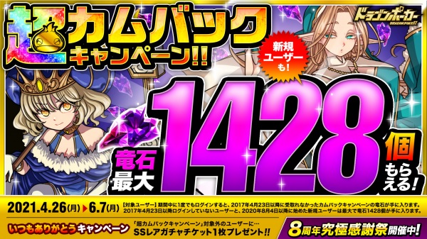 「ドラゴンポーカー」で“8周年究極感謝祭”が開催。超カムバックキャンペーンがスタート