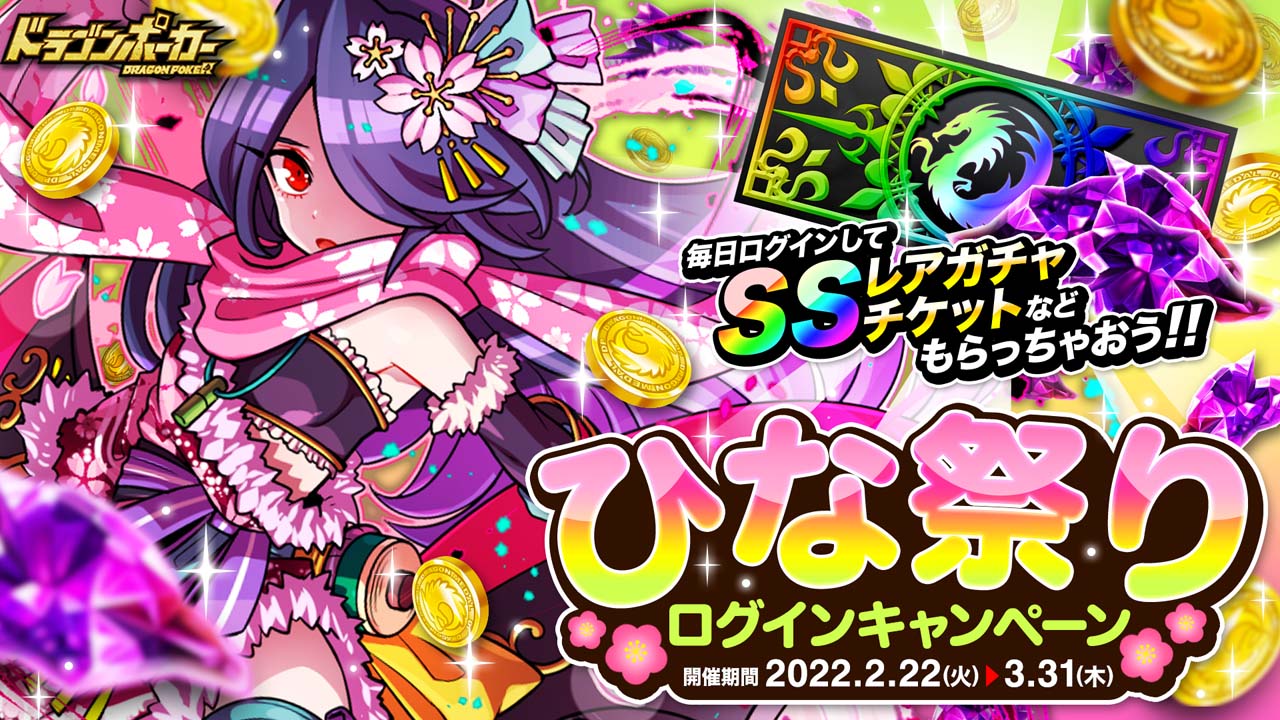 「ドラゴンポーカー」,“ひな祭りログインキャンペーン”が開催。「竜石」など豪華アイテムの獲得チャンス