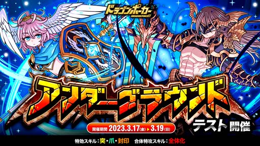 株式会社アソビズム(本社:東京都千代田区、代表取締役:大手智之)は、App Store・Google Playにて好評配信中のリアルタイム合体カードバトル『ドラゴンポーカー』で、2023年3月17日(金)より「アンダーグラウンド」をテスト開催いたします。