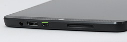 横から見るとかなりの厚みも感じるが,実のところ,実測約9.2mmで,Tegra Note 7と同じ厚さだ。相対的には薄型化を実現したことになる。ぱっと見で分厚く感じられるのは,Tegra Note 7だと本体側面部が丸みを帯びているのに対し,SHIELD Tabletでは角張っているためだと思われる。