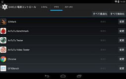 アプリタブに移れば,いま挙げた4つのプロセッサモードをアプリ別に設定できるようになる。あるゲームにだけ最大パフォーマンスを割り当てる,といったことも行えるわけだ。
