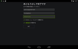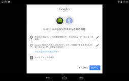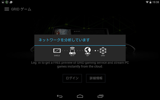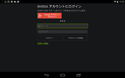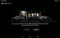 手元でAndorid 4.4.2のまま放置してあった国内版SHIELD TabletにSHIELD Hubのアップデートが降ってきて,「GRIDゲーム」を選択できるようになっていた。選択するとログインするよう求められるので,[ログイン]をタップ