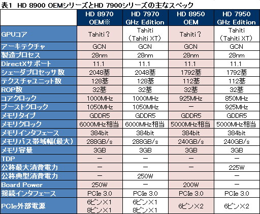 ※「Radeon HD 8970 GHz Edition(OEM)」と書かれた資料もある