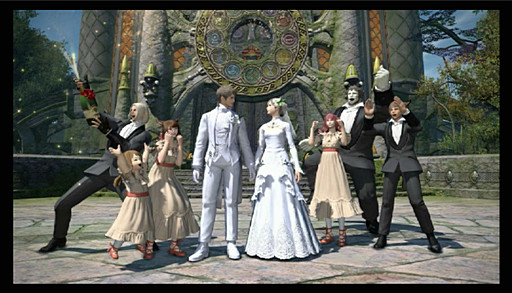 儀式の申し込みは,公式サイトのモグステーションで行う。申し込むと腕輪が入手できるので,それを二人が装備した状態で,セレモニー担当のNPCからスペシャルクエストを受注する。クエストは,衣装や指輪を用意するといったもの。指輪は店で売っているほか,クラフターでも製作可能だ。また,髪型も専用のものが用意されているという。