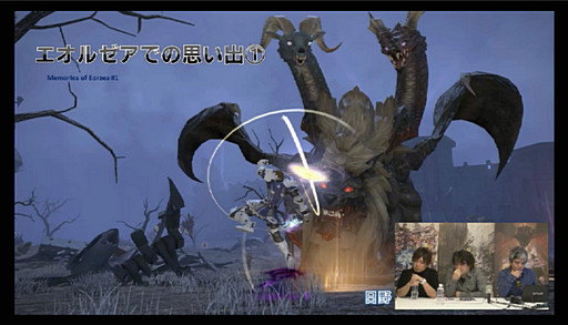 レターライブ後半では,吉田氏の友人であり,新生FFXIVのコアプレイヤーでもあるレベルファイブ代表取締役社長,日野晃博氏がゲストで登場した。氏は現在,真成編3層最終フェーズまで進んでいるそうだ。