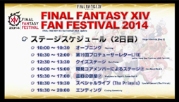 配信の最後に,お知らせコーナーとして,2014年12月20日,21日に東京ビッグサイトで行われる「FFXIVファンフェスティバル2014」のステージスケジュールが公開された。