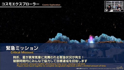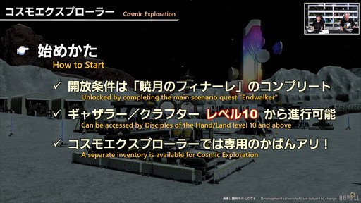 ここからは,星を探索する新コンテンツ「コスモエクスプローラー」が紹介された。ワールドごとに探索の進捗が異なる,クラフター/ギャザラー向けコンテンツだ。