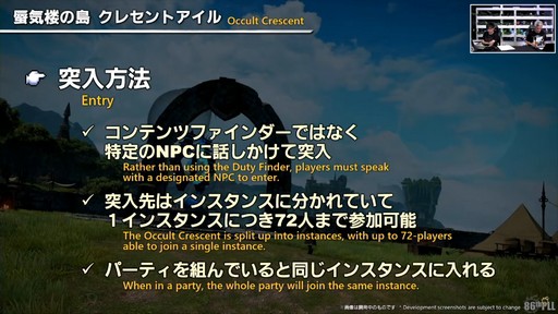 続いて,パッチ7.25で公開される「蜃気楼の島 クレセントアイル」が紹介された。「禁断の地エウレカ」や「セイブ・ザ・クイーン」の系譜に連なる,大人数で挑むコンテンツだ。