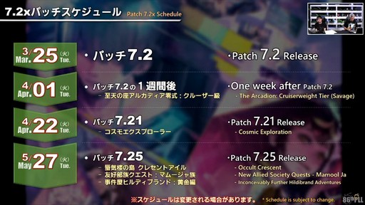 パッチ7.2全体のスケジュール予定
