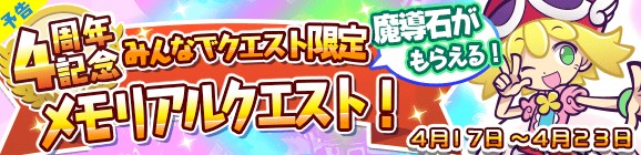 「ぷよぷよ!!クエスト」,4周年を記念した「4週連続プレゼントキャンペーン」が開催