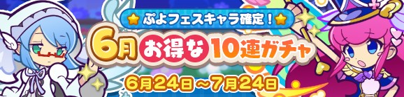 「ぷよぷよ!!クエスト」,ぷよフェスキャラ確定! “6月お得な10連ガチャ”が開催