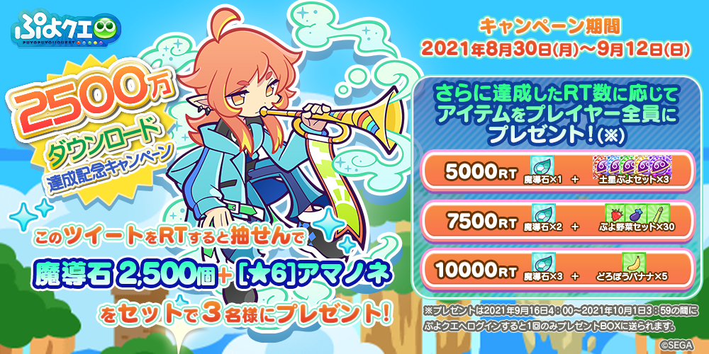 「ぷよクエ」の新キャラ“アマノネ”が登場する2500万DL記念ガチャが登場