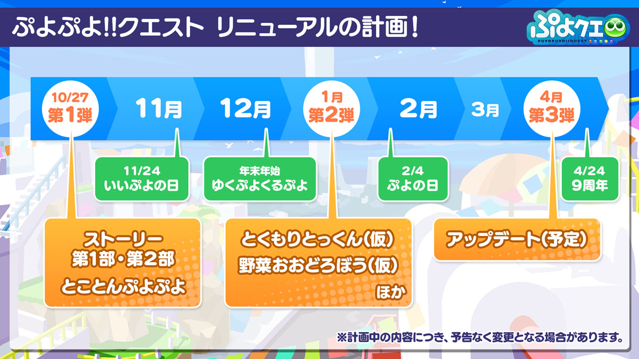 「ぷよクエ」10月27日のリニューアルで登場する新キャラたちがお披露目。アプリ内では1人用ルール“とことんぷよぷよ”も楽しめるように