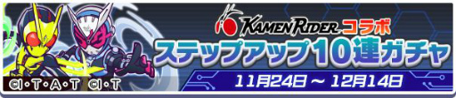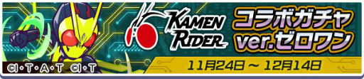 「仮面ライダーコラボガチャver.ジオウ」「仮面ライダー コラボガチャver.ゼロワン」の2つのコラボガチャを開催します。
