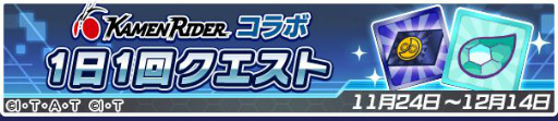 ◆「仮面ライダーコラボ1日1回クエスト」開催