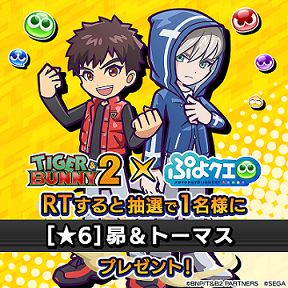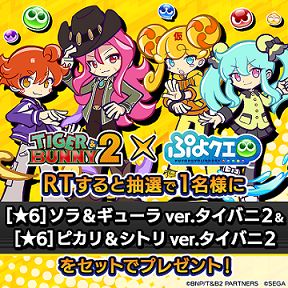「ぷよぷよ!!クエスト」,11月11日から開催する「TIGER & BUNNY 2」とのコラボイベントの情報を公開