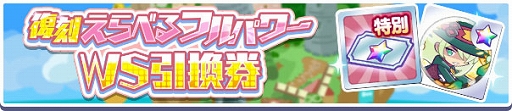 ガチャを引くごとに貯まる「ガチャパワー」を貯めると、貯めた「ガチャパワー」に応じて「復刻えらべるフルパワーWS引換券」や「復刻えらべるフルパワー引換券」を追加で獲得できる、「ガチャパワー」機能対応のガチャです!