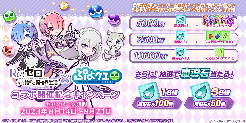 「ぷよクエ」,リゼロとのコラボを8月23日に復刻。ラム&レムが新登場