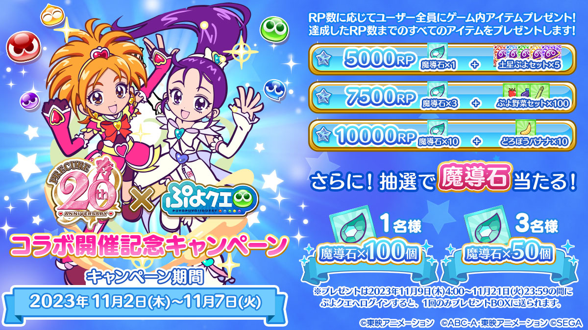 「ぷよクエ」,プリキュアシリーズとのコラボを11月8日から開催。書き下ろしのオリジナルストーリーも登場