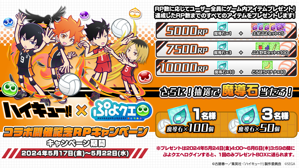 「ぷよクエ」,アニメ「ハイキュー!!」とのコラボ第3弾が5月23日より開催決定