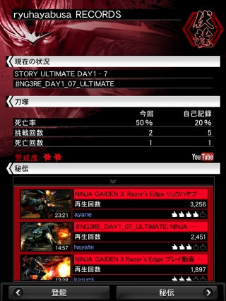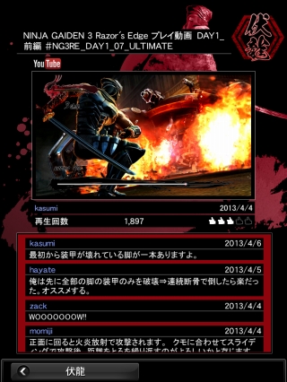 秘伝ページでは、世界中のプレイヤーの攻略動画が閲覧できる。
