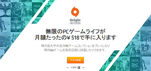 PCゲーマーにとっては気になるこの「Origin Access」。詳しくは,公式サイトの告知ページをチェックしてほしい。