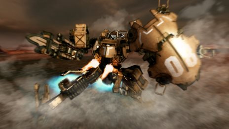 ハンガー武装と肩部武器を搭載できないというデメリットと引き換えに、従来なら「構え」が発生する強力な武器を、構えなしで移動しながらも発射できます。腕部が変形し、射撃します。