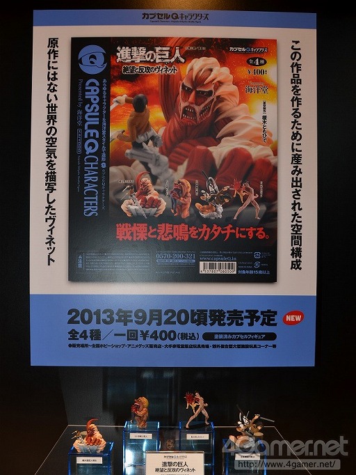 そんな「進撃の巨人」をフィーチャーしたカプセルフィギュア(全4種)が海洋堂から登場。その名も,「進撃の巨人 絶望と反攻のヴィネット」は2013年9月20日頃の発売で,価格は400円。コワイ!