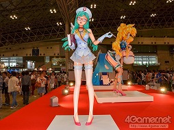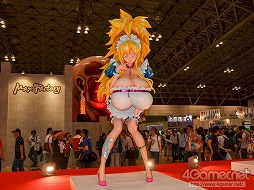 現代美術家・ポップアーティストの村上 隆氏と,原型師のBOME氏のコラボレーションから生まれた超巨大な美少女フィギュアがワンフェス会場に出現。正直,デカすぎてちょっと不気味です……。なるほど,これが進撃の巨人か(※編注 違います)。同スペースには,これまた巨大なグラフィグもあった。ちなみにこの超大型巨人……じゃなかった,超巨大美少女フィギュアは,後ろからみるとお尻のあたりが大変なことになっていたが,残念ながらここではお見せできない