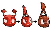 向かって左から当初のキャラクター→途中→現在のキャラクター |