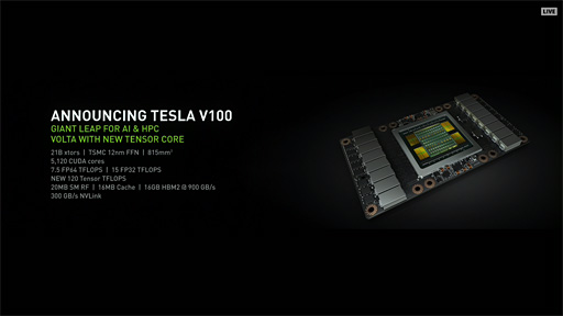 ![画像ギャラリー No.003のサムネイル画像 / [GTC 2017]NVIDIA,Volta世代の数値演算アクセラレータ「Tesla V100」を発表。815平方mmのダイサイズに5120基のCUDA Coreを集積](/games/208/G020859/20170511001/TN/003.jpg) |
