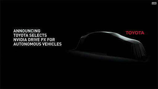 基調講演では,NVIDIAとトヨタ自動車が提携し,「DRIVE PX」ベースの自動運転自動車を開発するという,驚きの発表もあった