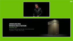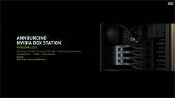 DGX Station。デスクトップPC風のタワー型コンピュータとして登場する。こちらは4基のTeslaを搭載し,6万9000ドル。やはり発表と同時に注文受付が始まっている