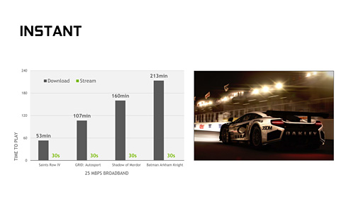 冒頭でも紹介したとおり,GeForce Nowのストアで購入したタイトルは,NVIDIAが提供するNVIDIA GRIDを用いたストリーミングサービスでプレイできる。そのメリットを「最新のゲームタイトルを,(インストールする)時間をかけることなくプレイできる点にある」と,NVIDIAでSHIELDデバイスのプロダクトマネージャーを務めるAndrew Fear(アンドリュー・フィアー)氏は強調していた。