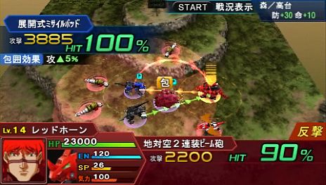 ユニットを中心にした円の範囲内なら,どこにでも動かすことができ,障害物を越えて攻撃できる曲射攻撃や,敵ユニットを味方ユニットで囲めば命中率が上がる包囲効果などもあり,新たな戦術が楽しめそうだ。