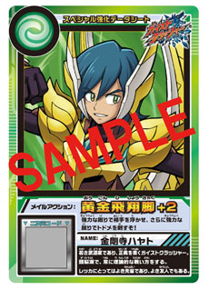カード内の2次元コードを3DS本体のカメラで読み込むと、ハヤトのメイルアクション「黄金飛翔脚+2」が習得可能!