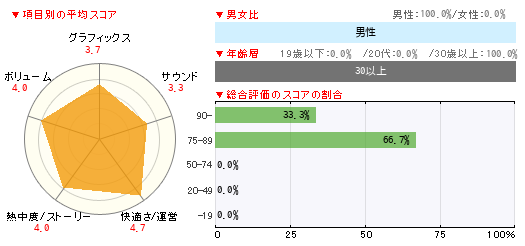 グラフィックス サウンド 快適さ/運営 熱中度/ストーリー ボリューム 3 3 4 4 4 -