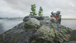 結局,「正しく反射を出す」というよりは,「それっぽく見えるように対策する」ことになりました。たとえば,映り込まないことによる粗(あら)が見えないよう,別のオブジェクトを置いたり,反射の方向をコントロールしたり,特例的なシェーダで映り込みっぽいものが出るようにしたり,いろいろやっています。