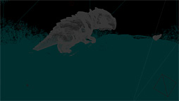 Happy Forestの描画解像度は1920×1080ドットのフルHD。シーン全体の総ポリゴン数は約3500万,1フレームあたりの総ポリゴン数は,水面と森全体を見通せるような,多いところで約1800万程度とのことだ。シャドウ生成用の不可視ポリゴンは使用しておらず,「影を落とすためのオブジェクト」も,可視状態でフレーム外に配置してあるという。