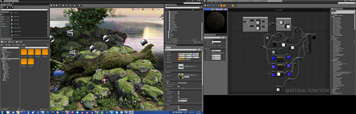 そう述べていた高橋氏によると,基本的には,MARZAが過去の制作で使ってきた(Arnold上の)シェーダをUE4のマテリアルエディタで再現するような感じで構築していったとのこと。