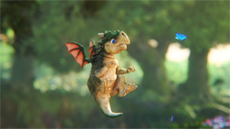表現するキャラクターは人間ではないものの,Happy Foresetの主人公である子ドラゴンの質感はとてもリアルに見える。キャラクター表現において重要度の高い眼球の質感も自然で,何よりアニメーションがプリレンダ品質になっている。