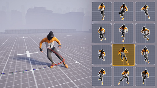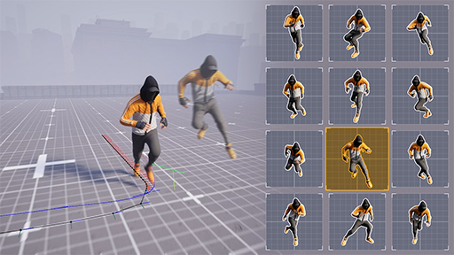とくに注目を集めたのは,UE 5.4の特徴である「モーション マッチング」だ。これは,キャラクターが動くモーションを作る作業を効率化する仕組みである。あるモーションから,ほかのモーションへつながる動きを,用意したモーションデータベースから自動で割り当てて,スムーズな動きを実現するとのこと。