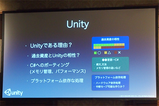 まず,移植作業にUnityを使うのが適したゲームなのかどうかが問題だと畑氏は指摘する。「Unityとどれくらい相性がいいのかを調査すべき。相性がいい・悪いという点が(Unityを使うかどうかの)判断の基準になる」(畑氏)。