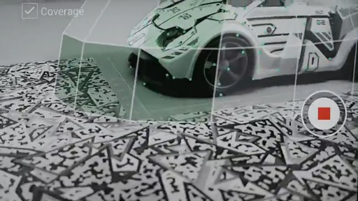 開発中のデバイスとして2眼のカメラを取り付けたタブレットでのデモも見せてもらったのだが,そちらではさらに精度よくZ座標を取ることができ,カメラで写して回った情景が画面内に3Dオブジェクトとして展開されているところも確認できた。