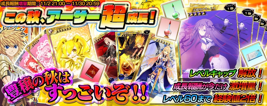 「拡散性ミリオンアーサー」,獲得経験値が2倍の成長促進キャンペーンを実施