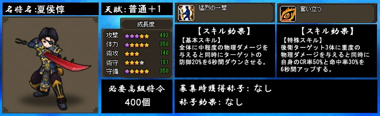 「四神演武 Regulus」,三国志で名高い魏の武将「夏候惇」が名将として参戦