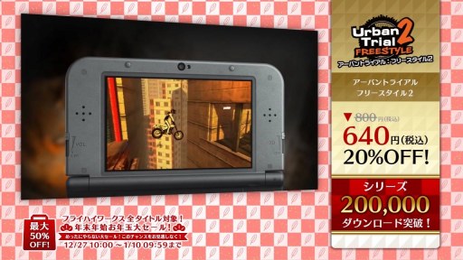 100万ダウンロード突破の感謝を込めて、フライハイワークスの3DS+Wii U 全タイトル65作品を対象とした「フライハイワークス 3DS+Wii U全タイトル対象! 年末年始お年玉大セール!」を実施します。