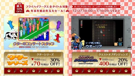 | フライハイワークス 3DS+Wii U全タイトル対象! 年末年始お年玉大セール! |