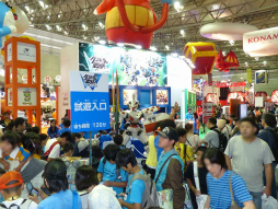 ゲームのほかには,ブース内を数人のジャグラー達が歩き回り,さまざまな大道芸を披露しては来場者を楽しませていた。