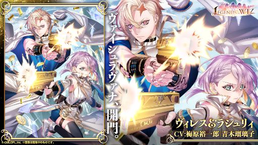 「THE LEGENDS of WIZ I」を、3月5日(日)より開催いたします。2周年、4周年、6周年、8周年の周年記念イベントに登場した精霊たち「キワム&アウデアムス(CV:寺島拓篤)」、「エニィ(CV:美山加恋)」、「リレイ(CV:野口瑠璃子)」、「ルミスフィレス(CV:佐倉綾音)」「ヴィレス&ラシュリィ(CV:梅原裕一郎&青木瑠璃子)」が集結いたします。各キャラのイベントのセリフは過去のイベントに登場した際の名セリフとなっており、必見です。